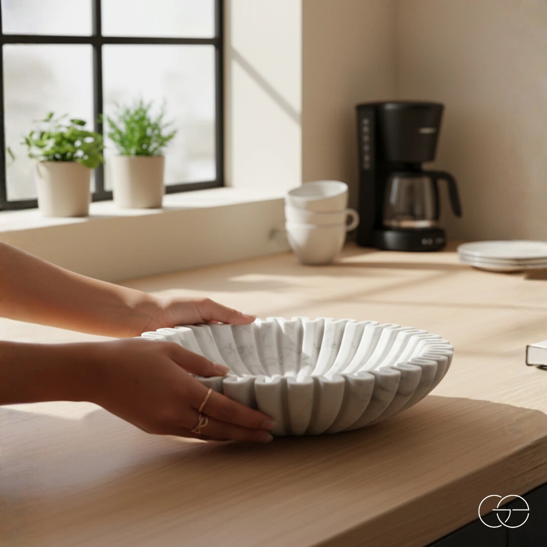 Handcrafted White Marble Decorative Bowl – Elegant Textured Design