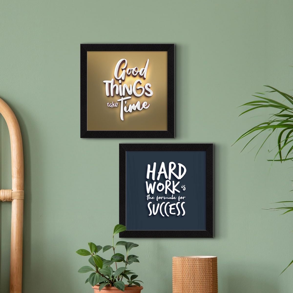 ArtX Paper Motivational Wall Frames, Inspirational Quotes Wall Frames For Home Office Study Room Decor, Multicolor Posters With Frame, Set of 4